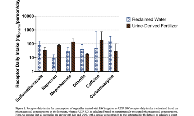We’re thrilled to share a new peer-reviewed publication summarizing our research on the fate of pharmaceuticals in urine fertilizer! This research project was a 6-year collaboration between Rich Earth Institute, University of Michigan, and the University at Buffalo. The study compares pharmaceutical uptake in lettuce fertilized with urine to irrigated with reclaimed water. To represent a worst-case scenario, the urine fertilizer was spiked with pharmaceuticals at two levels—one matching the highest concentrations found in the literature, and another ten times higher than that. The study found that if you ate urine-fertilized vegetables every day for 2,800 years, your cumulative exposure would amount to just one single therapeutic dose of the pharmaceuticals studied. Read an overview of our thinking about this topic, or delve into the full research article: Comparative Exposure Assessment of Crops Grown by Urine-Derived Fertilizer and Crops Irrigated with Reclaimed Water.